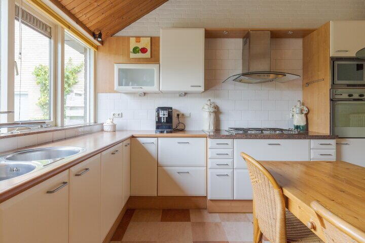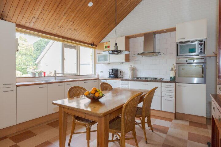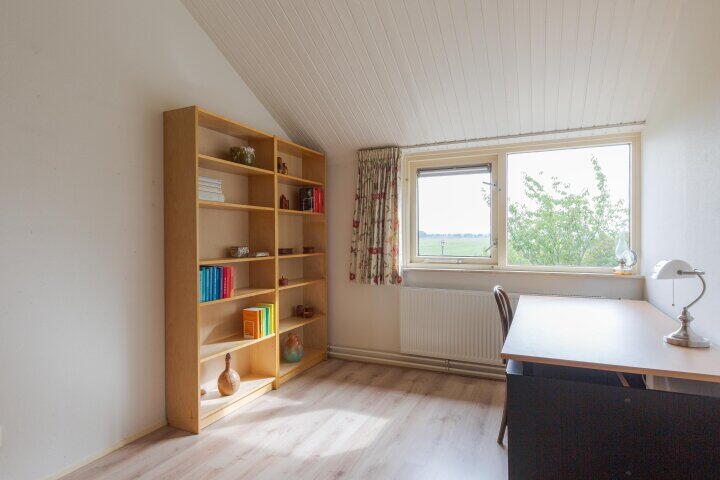 Bij aankomst parkeer je je auto natuurlijk op je eigen oprit. Je stapt de ruime hal binnen, richting de keuken en daar word je al getrakteerd op de eerste verrassing. Een hoog plafond dat het dak volgt en zicht op de overloop-vide. De ruime keuken is gezellig en heeft plek genoeg voor een flinke eettafel. Via een doorgang en afstapje kom je in de royale woonkamer. Hier heb je een heerlijk zicht op de achtertuin en de weilanden richting Sneek.