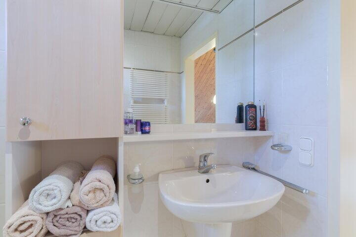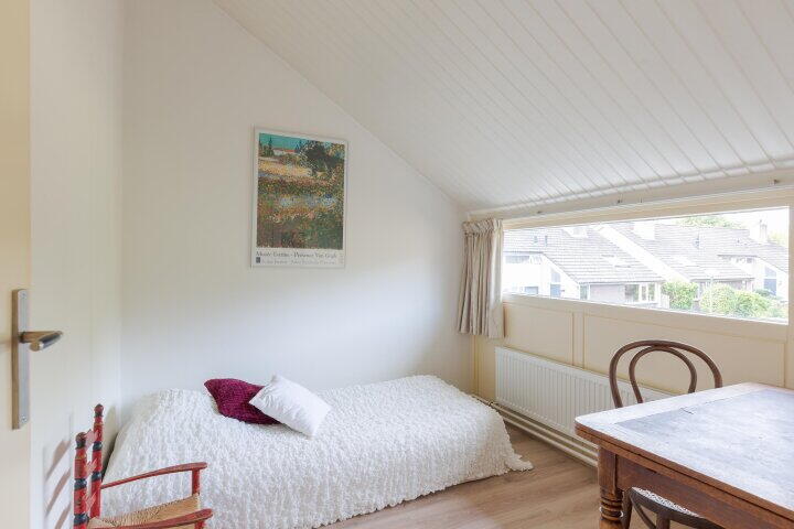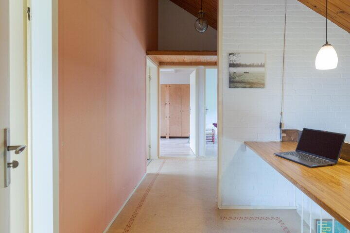 Op de verdieping is de overloop ook weer een verrassing door de open ruimte met de keuken. De overloop geeft je toegang tot vier comfortabele slaapkamers waarvan een slaapkamer een vlizotrap naar de bergzolder heeft. De badkamer heeft een inloopdouche, toilet en wastafel.